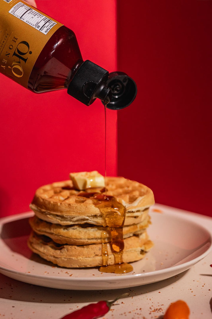Miel 100% pura infusionada con chiles naturales, perfecta para disfrutar con alitas, pizza, pollo, sanduches, quesos, tostadas y mucho más!