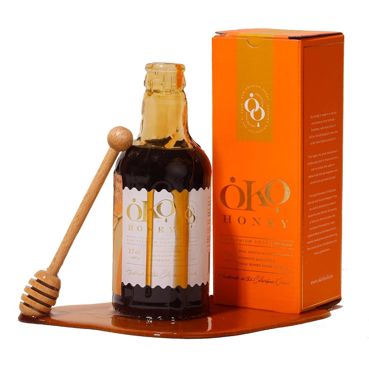 Nuestra miel de OKO Honey es un tesoro de la naturaleza. De color oscuro y sabores silvestres, refleja la pureza de su origen. No utilizamos pesticidas ni señales electromagnéticas en nuestra finca, y nuestras abejas viven en un entorno libre de estrés, alimentándose y reproduciéndose de manera natural.