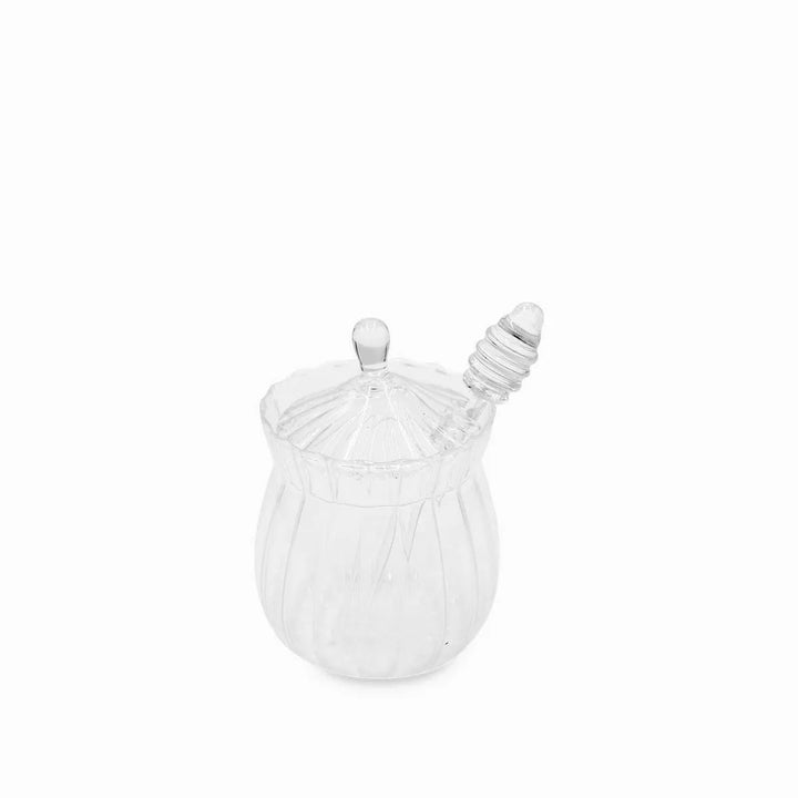 Almacena la miel y sirvela fáclmente. Mielera en vidrio.